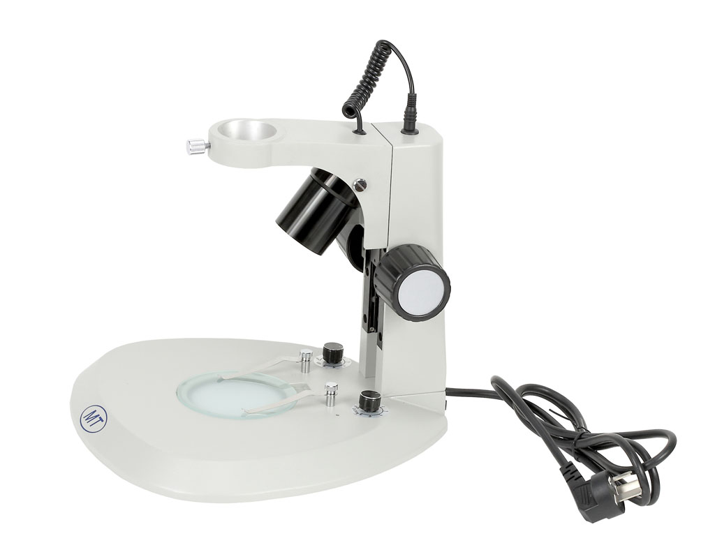 型號名稱:SD4-D底座組 說明: ● 鏡架內(nèi)置可調(diào)角度、可調(diào)亮度6V/10W帶反光杯鹵素上光入射照明光源 ● 底座內(nèi)置110V或220V/5W熒光燈下光透射照明 ● 可單獨(dú)使用或者同時(shí)使用上光源或下光源照明,分離式各種插頭電源線 ● 鏡體安裝孔直徑Φ45mm ● 方立柱調(diào)焦范圍100mm ● 中心工作臺(tái)直徑Φ95mm
